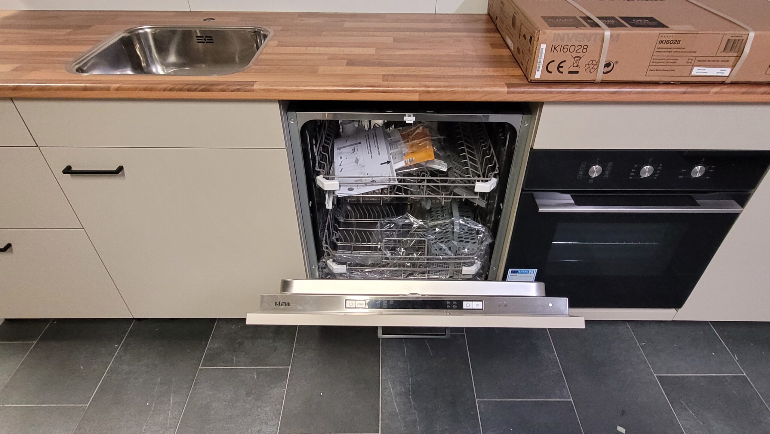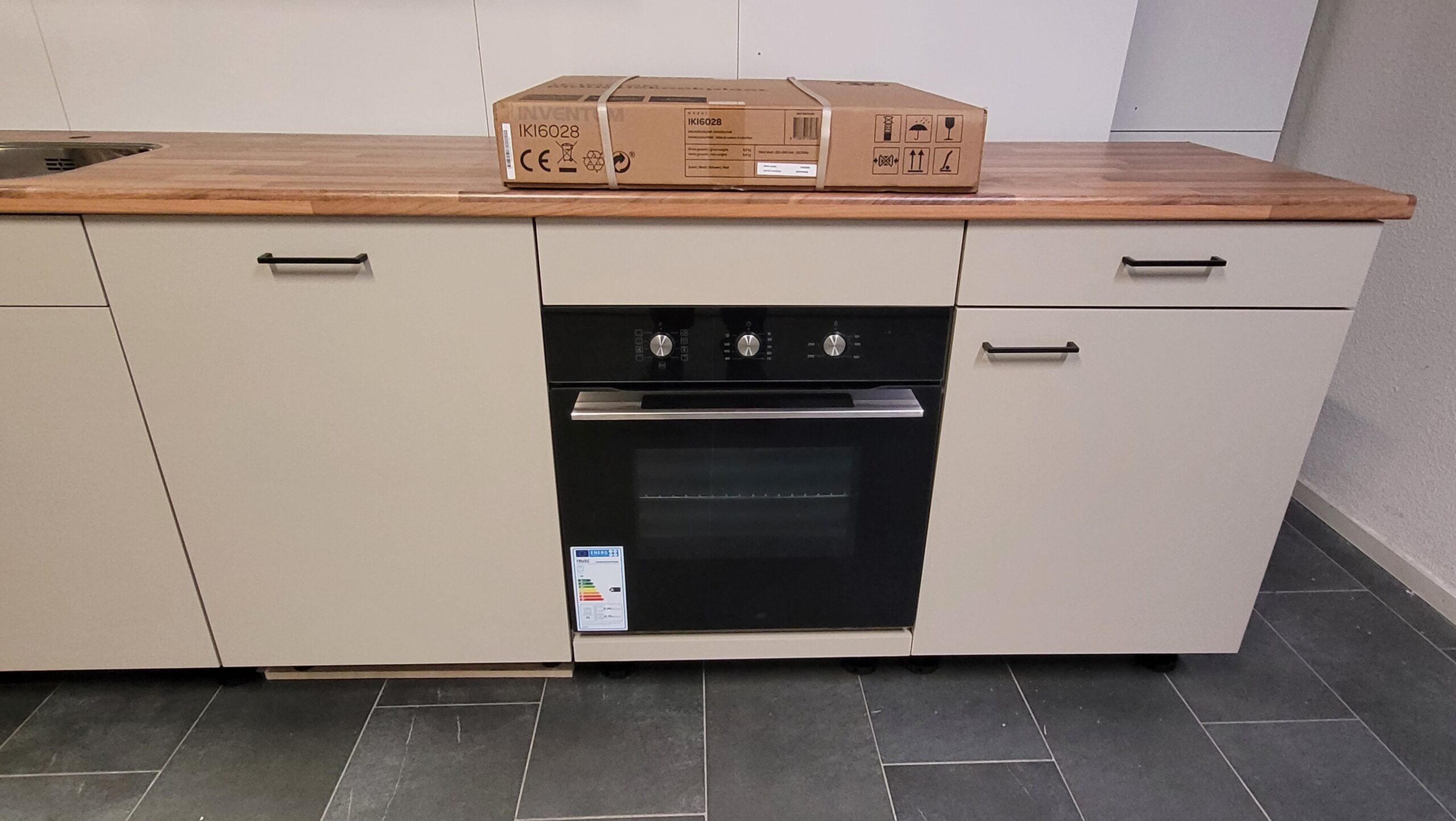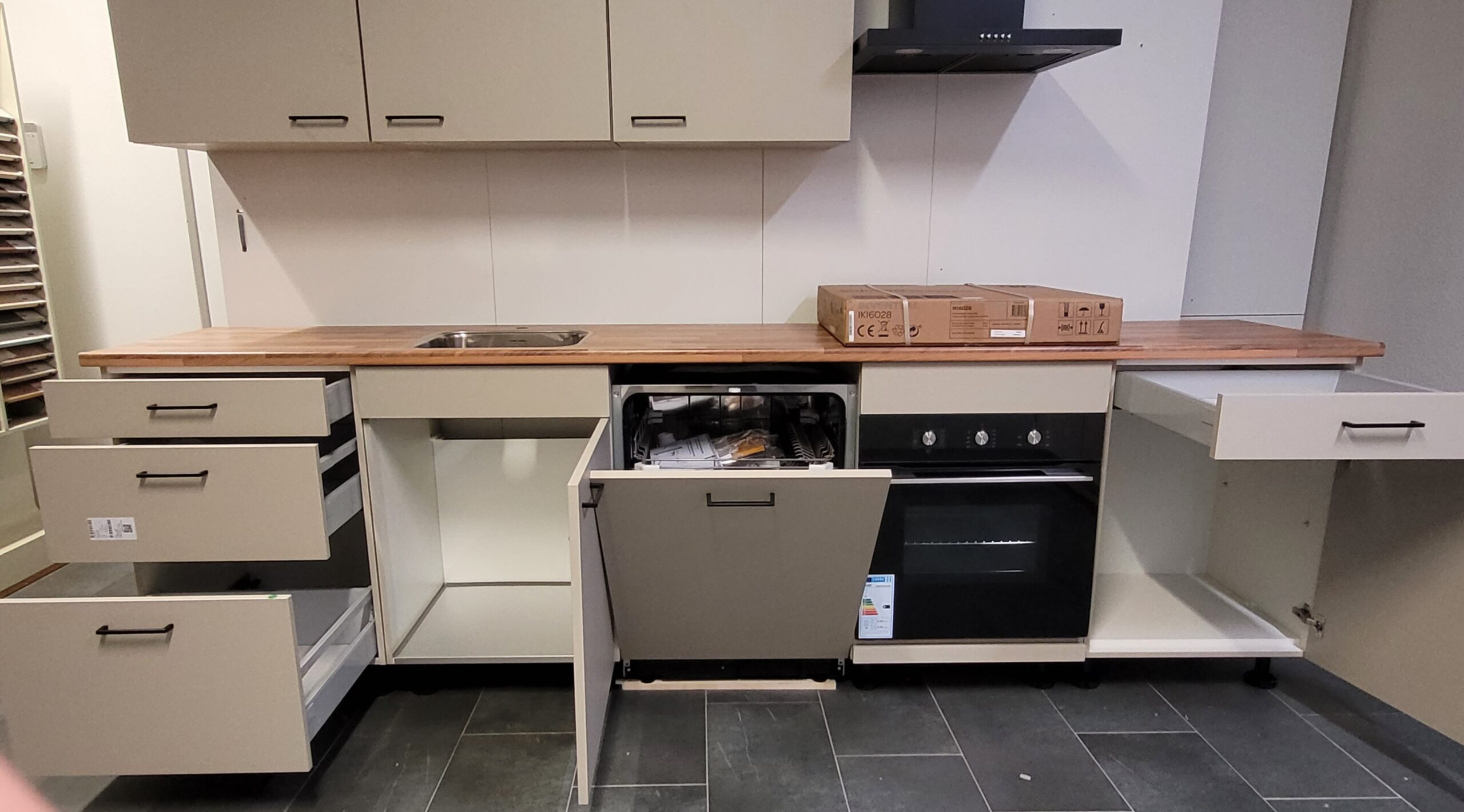 60 cm (ladekast) x 60 cm (gootsteenkast) x 60 cm (vaatwasser) x 60 cm (ovenkast) x 60 cm