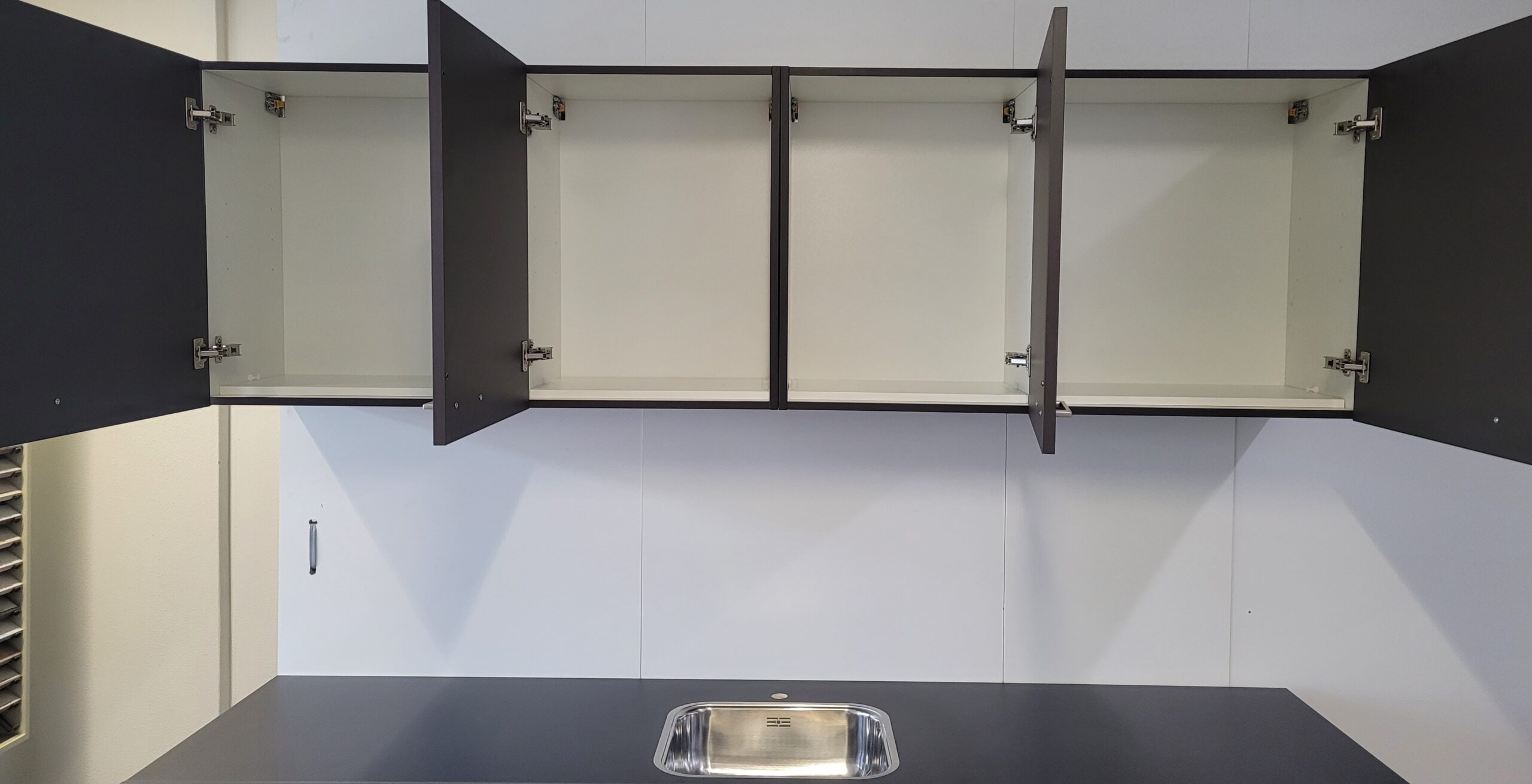 Complete keuken inclusief modern kunststof werkblad met luxe VLAKBOUW spoelbak, softclosing op lades, stelpoten én inclusief bovenkasten.