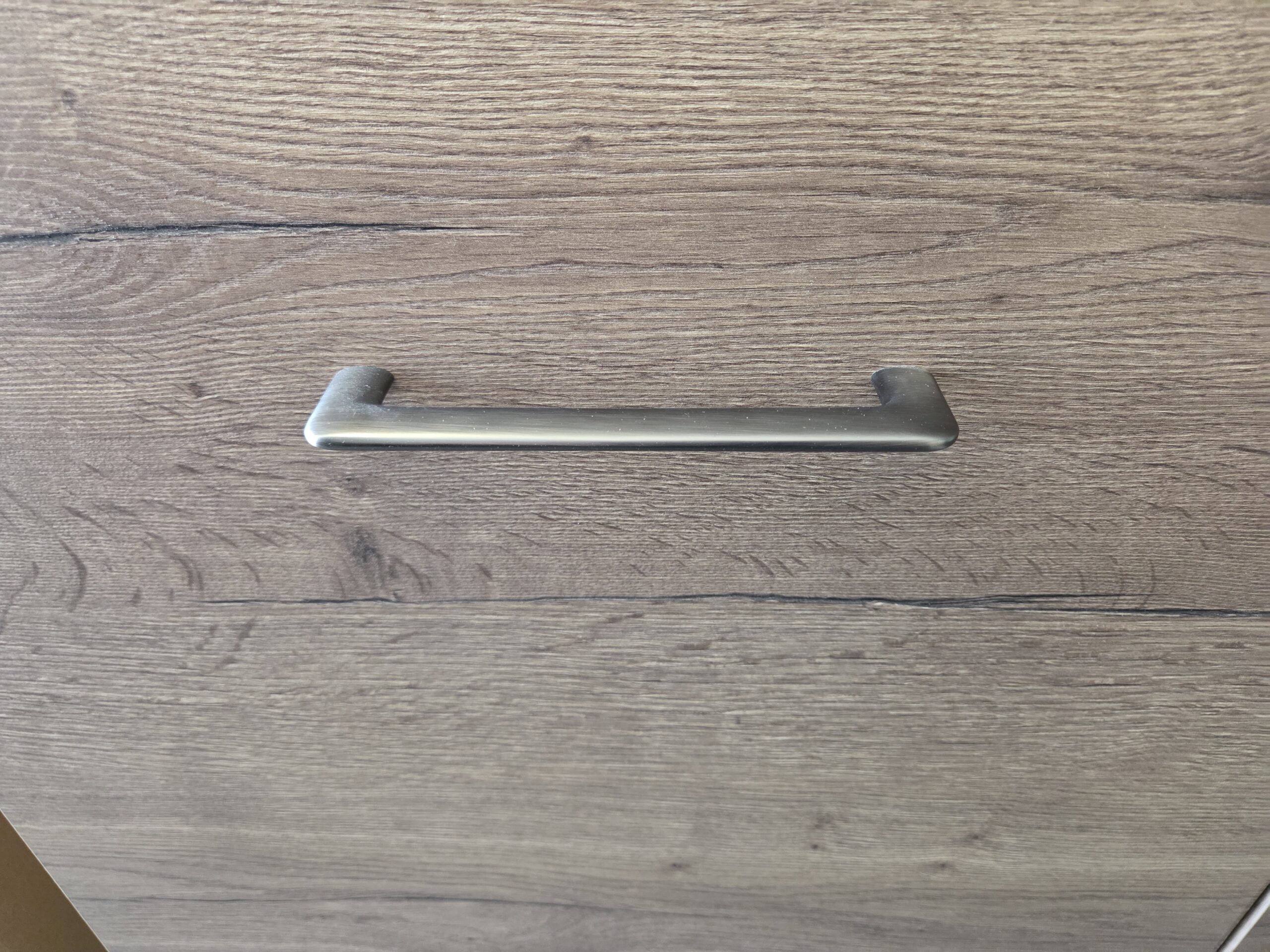 Deze keuken is uitgevoerd in een “Havanna Houtlook”  decor kleurstelling met mat titanium kleurige keukengrepen.